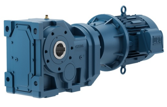 Os motorredutores da linha GK são fornecidos com torques nominais de 140 a 13800 Nm. Possuem uma ampla faixa de transmissão, possibilitada pelo acoplamento de um redutor auxiliar, com alto rendimento. Esta linha possui uma ampla possibilidade de fixações e opções de eixo de saída.